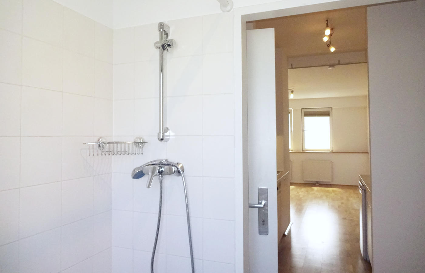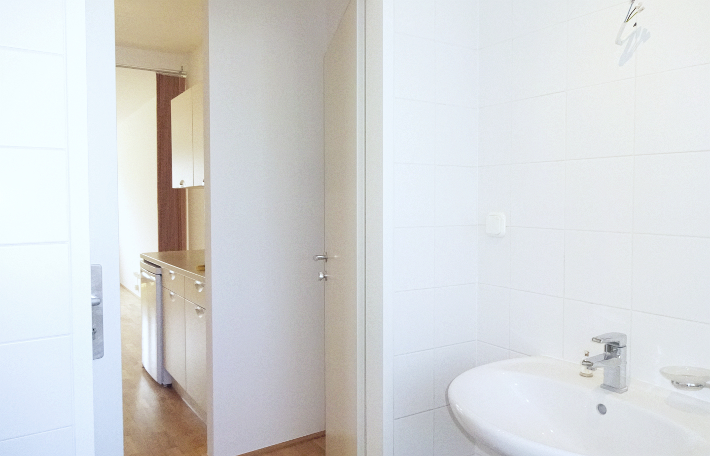 Die Wohnräume (inkl. Vorraum) sind durchwegs mit Parketten ausgelegt, Nassräume sind verfliest. Die Küche ist komplett eingerichtet, im Badezimmer sind Dusche, Waschbecken und Toilette.